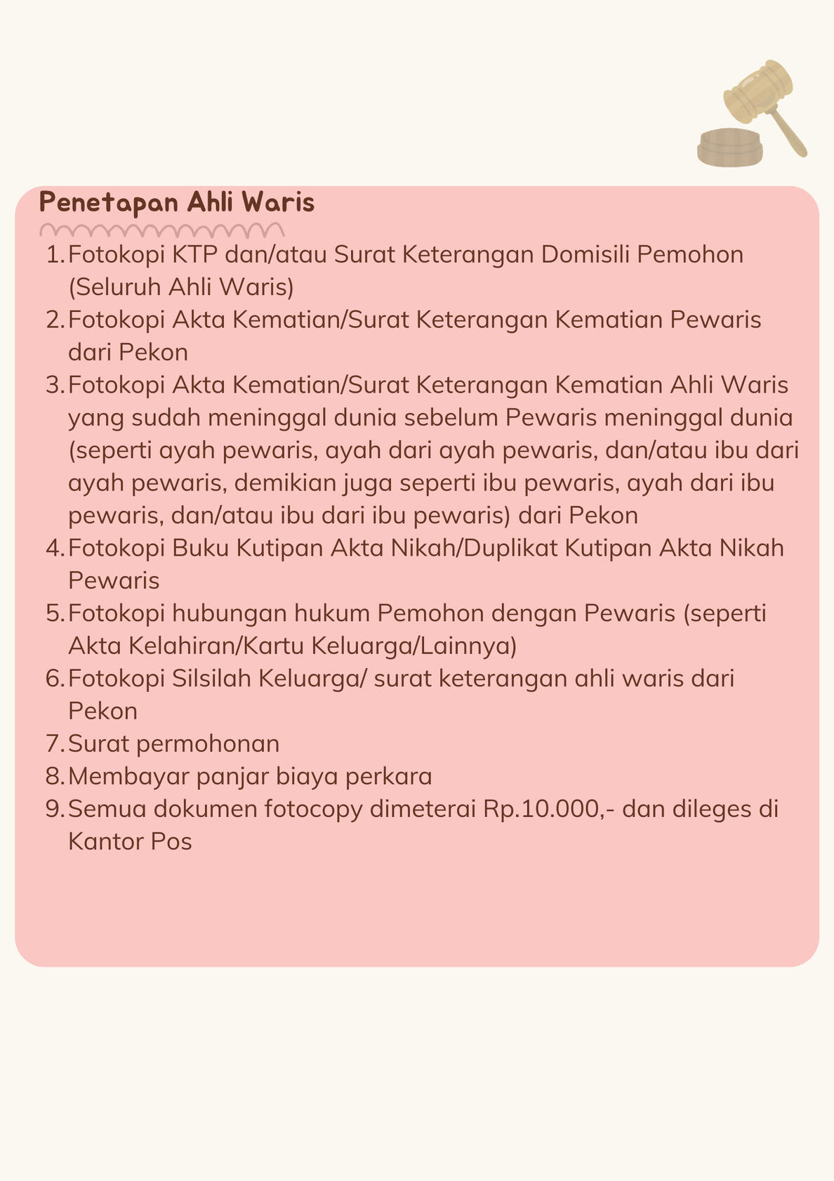5. Penetapan Pengadilan atas permohonan seseorang tentang penentuan siapa yang menjadi ahli waris.